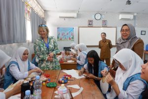 Selain itu, Ibu Penny juga terlibat pada sesi berbagi bersama murid-murid BRIDGE di SMP Negeri 6 Makassar. Sesi tersebut berlangsung sangat interaktif dan penuh antusiasme. Dalam sesi ini, para murid berbagi pengalaman kolaborasi mereka dengan murid dari Yankalilla Area School. Mulai dari pengalaman pembelajaran lintas budaya, komunikasi, serta harapan mereka terhadap kemitraan ini kedepannya. Diskusi dengan Ibu Penny tersebut memberikan pengalaman yang autentik bagi murid, sekaligus memperkuat rasa percaya diri mereka dalam berkomunikasi dan berkolaborasi dengan menggunakan Bahasa Inggris.